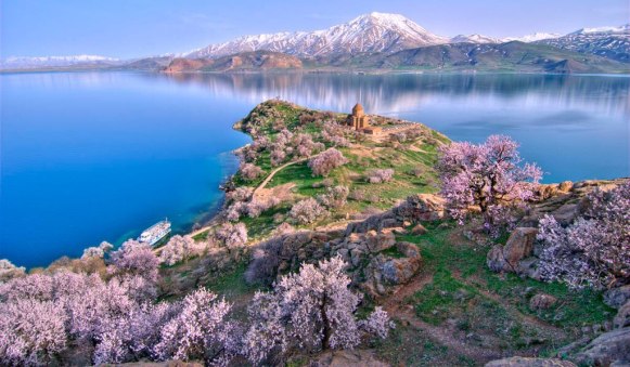 Akdamar Adası, Van Gölü’nün güneydoğusunda, Van ilinin Gevaş ilçesi sınırları içinde yer almaktadır. Ada, 10. yüzyılda inşa edilen ve günümüze kadar ayakta kalan Akdamar Kilisesi ile ünlüdür. Kilise, 915-921 yılları arasında Ermeni Kralı I. Gagik tarafından inşa ettirilmiştir ve Urartu mimarisi ile Ermeni sanatının bir karışımını yansıtmaktadır. Akdamar Kilisesi, Hristiyanlık tarihinden sahneleri tasvir eden fresklerle süslenmiştir. Bu freskler, Ermeni sanatının en önemli örneklerinden biri olarak kabul edilir. Kilisenin iç duvarlarında, Âdem ile Havva’nın cennetten kovuluşu ve Yunus Peygamber’in balık karnına düşüşü gibi kutsal kitaplardaki hikâyelerden alınmış kabartmalar bulunmaktadır. Akdamar Adası, adını bir efsaneden alır. Efsaneye göre, Tamar adlı bir Ermeni prensesi adada yaşarmış. Tamar, adaya yakın köylerden birinde yaşayan bir gence âşık olurmuş. Genç, her gece Tamar’ın yaktığı fenere doğru yüzermiş. Ancak bir gün Tamar’ın babası bu durumu fark eder ve fırtınalı bir gecede fenerin yerini değiştirir. Genç, yönünü kaybedip boğulurken “Ah, Tamar!” diye haykırır ve ada bu isimle anılmaya başlar. Akdamar Adası, bahar aylarında çiçek açan badem ağaçlarıyla büyüleyici bir manzara sunar. Ada, Van Gölü’nün turkuaz suları ile çevrili olup, ziyaretçilere huzur dolu bir atmosfer sunar. Adanın uzunluğu yaklaşık 3 kilometre olup, kıyıya uzaklığı da 3 kilometredir.